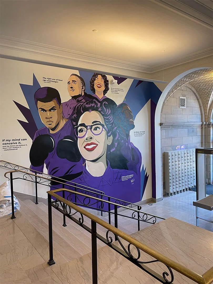 Located at Cardozo high school in Washington, DC, ” the Cardozo mural features the people who provided the inspiration for the school’s education houses. The mural features Katherine Johnson, Chadwick Boseman, Muhammad Ali, Jose Andres, and Sonia Sotomayor.